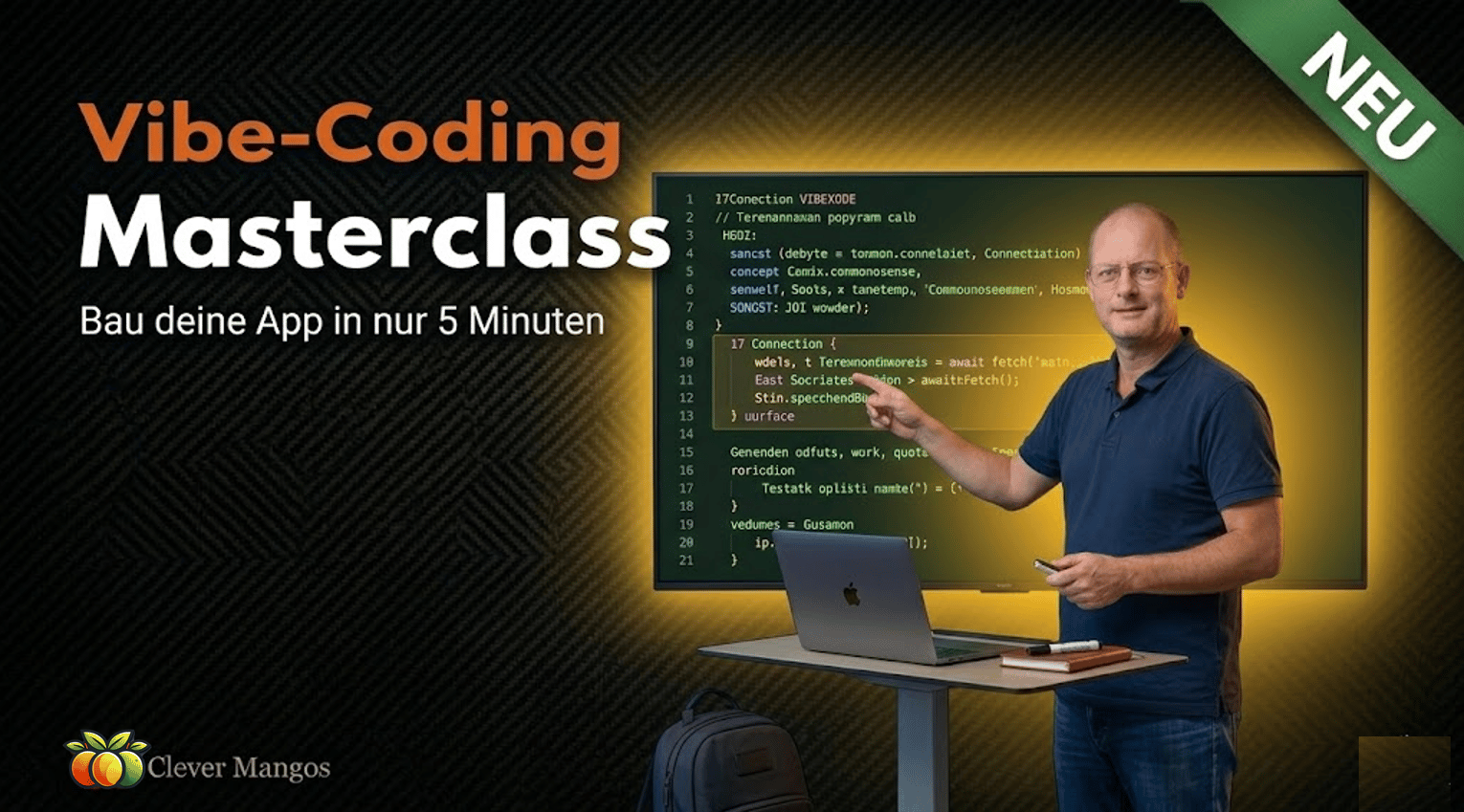 Und wenn du mal nicht weiter weißt: Wir haben in der Clever Mangos Community einen eigenen Vibe-Coding-Bereich eingerichtet. Dort teilen unsere Mitglieder ihre besten Prompts, zeigen ihre Mini-Apps, helfen bei Problemen – und du profitierst von den Erfahrungen der ganzen Gruppe, statt alleine durch Trial & Error zu lernen.